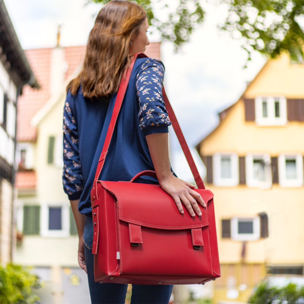 Damen Aktentasche Leder Rot, Futter Blau I Jahn Lederwaren