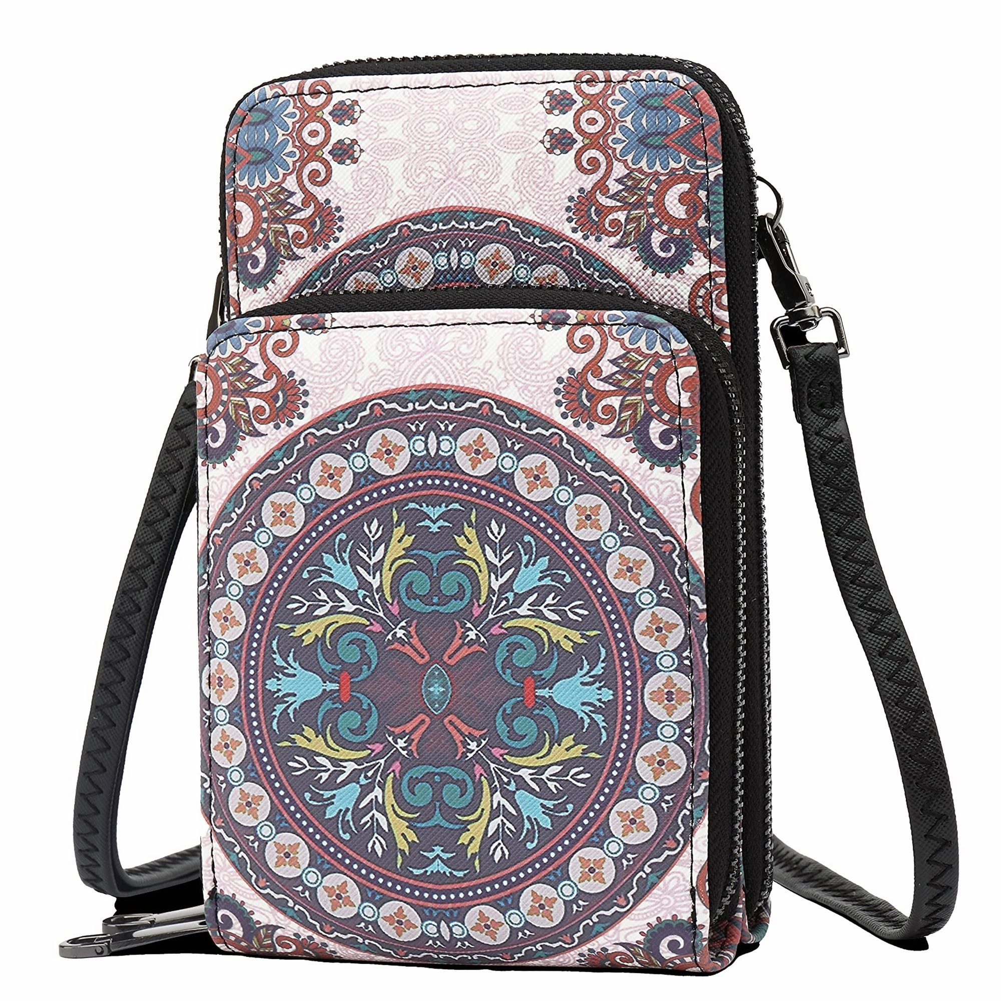 TAN.TOMI Handytasche »Handytasche zum Umhängen, Handy Tasche Geldbörse mit vielen Fächern, Umhängetasche klein«, bedruckt mit Blumenmuster im Mandala …
